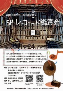 | 11/24我孫子市主催で旧井上家住宅で楽しむSPレコード鑑賞会が開催されました AAFCは第二部に小笠原会員と鳥居会員が参加しました 小笠原さん自作の蓄音機で、都々逸、クラシック音楽、ポピュラー音楽などを楽しみました お天気もとても良い中、サボテン針が奏でる優しい音に酔いしれました 市民の方も大勢こられ、とても盛り上がった催しでした 井上家は江戸時代前期から江戸で食料雑貨商を営んでいましたが、 「享保の改革」の時に手賀沼の干拓事業に参加しこの地域に移住してきました この時代からの歴史的建造物がいくつか残されており、我孫子市を代表する文化財です ![]() ![]() |