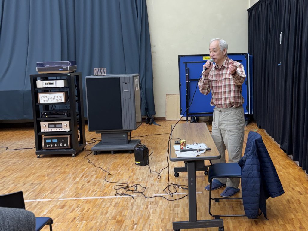 山下達郎、杏里、Rebecca、Epoから始まり、湘南のドラブコースをイメージし、楽しい解説を交えて青春時代、青年時代のドライブで聴く懐かしく忘れられない音楽を10曲集めて聴きました。山本会員のそれぞれの曲に込められた心象は多くの会員の心にシンクロし、会場全体が青年時代にタイムスリップしたような感覚を味わうことができました。歳を重ねても、青年のあの頃を思い返せば、そこにはその場に戻れる音楽があったことを改めて感じました。当時カーオーディオはカセットテープでしたが、その音が意外に良かったことを思い出しました。